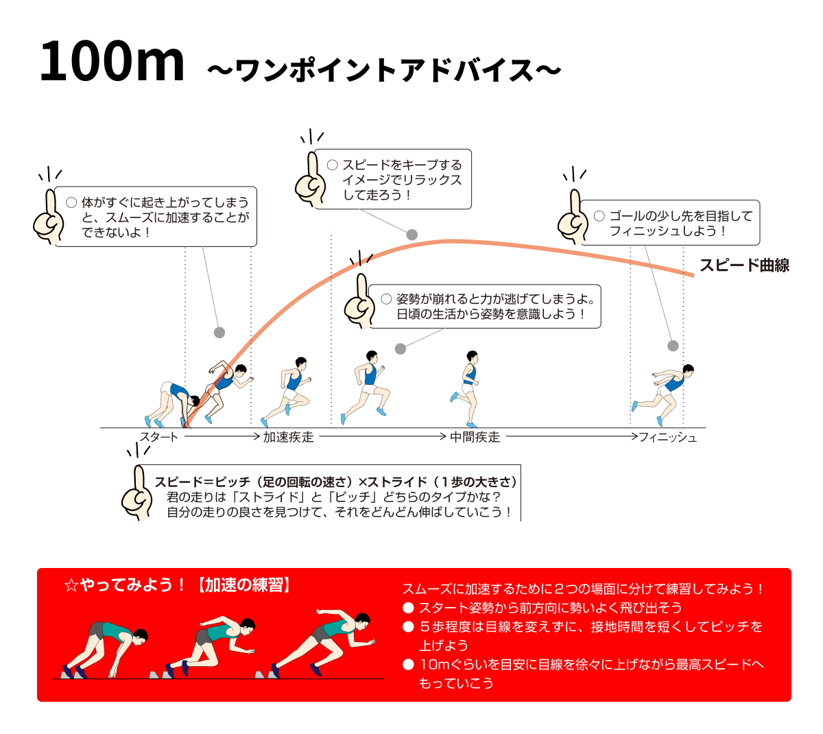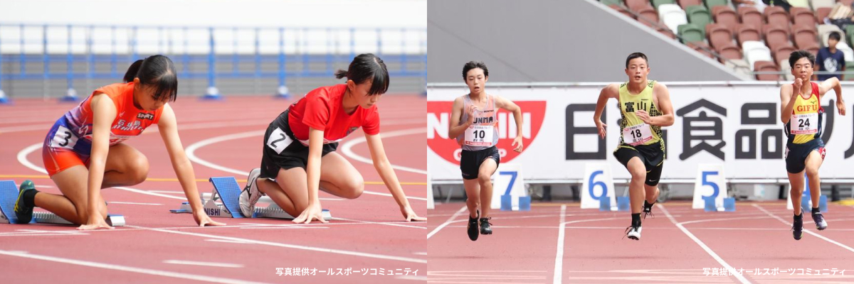 100mをいかに速く走るかを競う種目です。