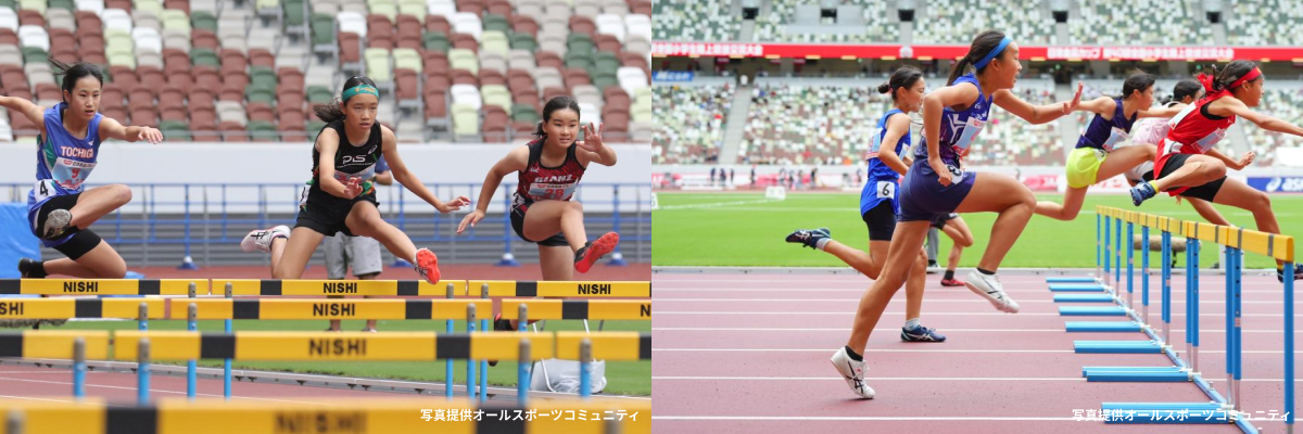 80mハードルは、ハードル(障害)が置かれた直線のレーンを走り、タイムを競います。