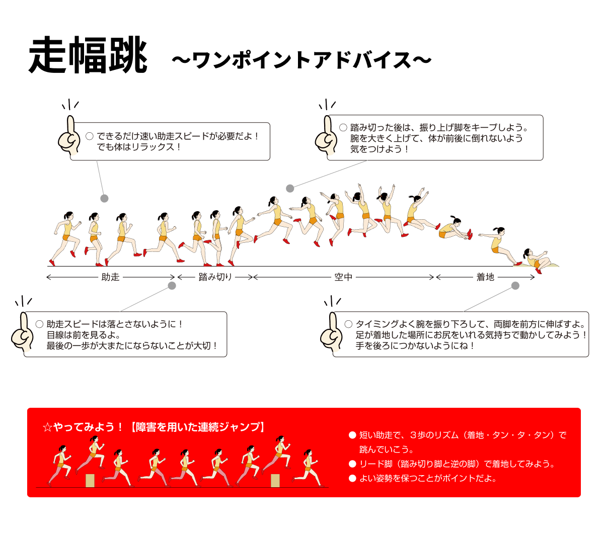 走幅跳は、助走をつけて遠くに跳ぶ競技です。